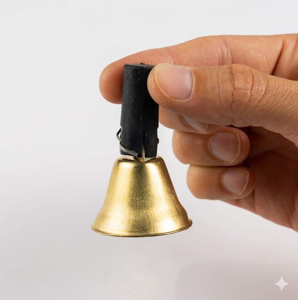 Campanita de bronce/latón que garantiza un sonido nítido y duradero.