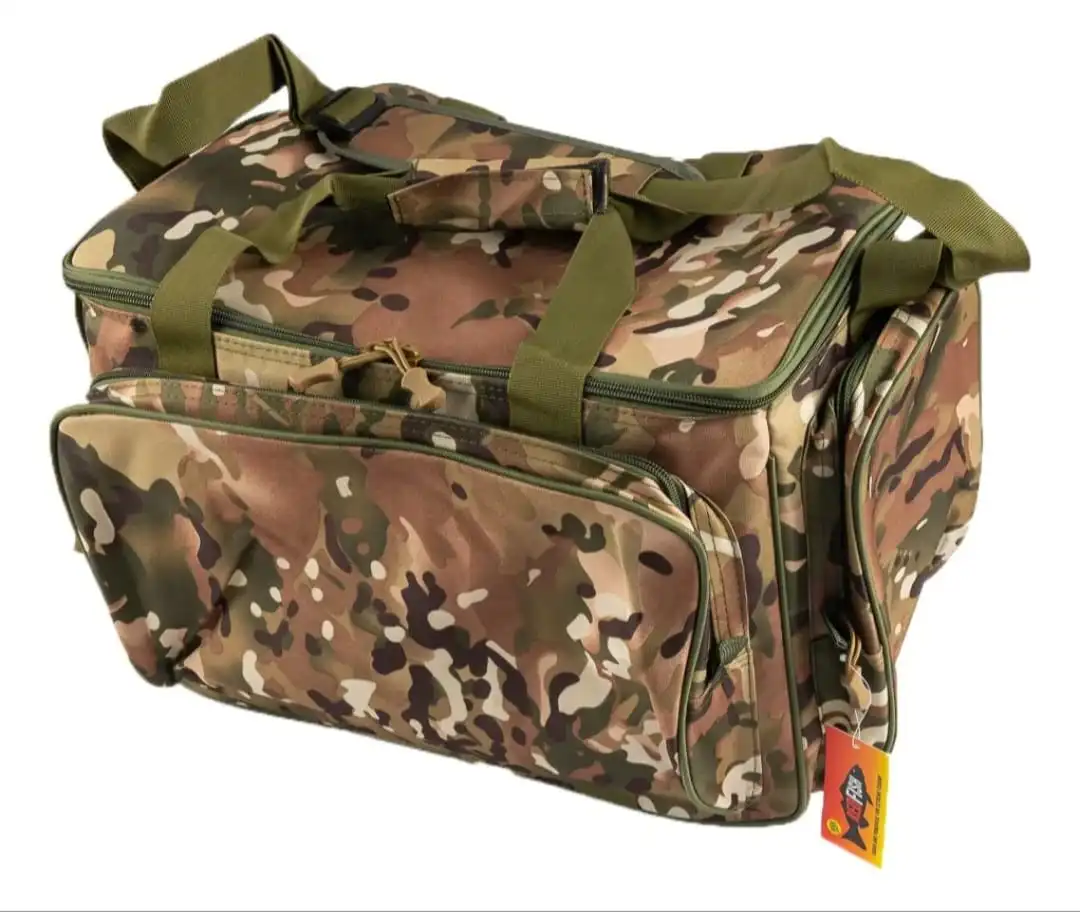 Bolso Redfish camuflado amplio y resistente ideal para transportar cajas organizadoras,señuelos,reeles y todo tu equipo de pesca. Medidas: Ancho 44cm,alto 30 cm y profundidad 40 cm . (No incluye cajas)