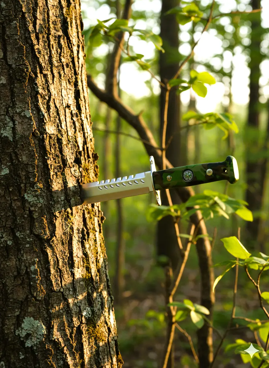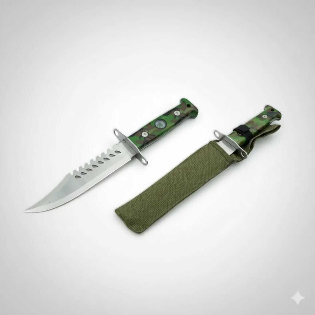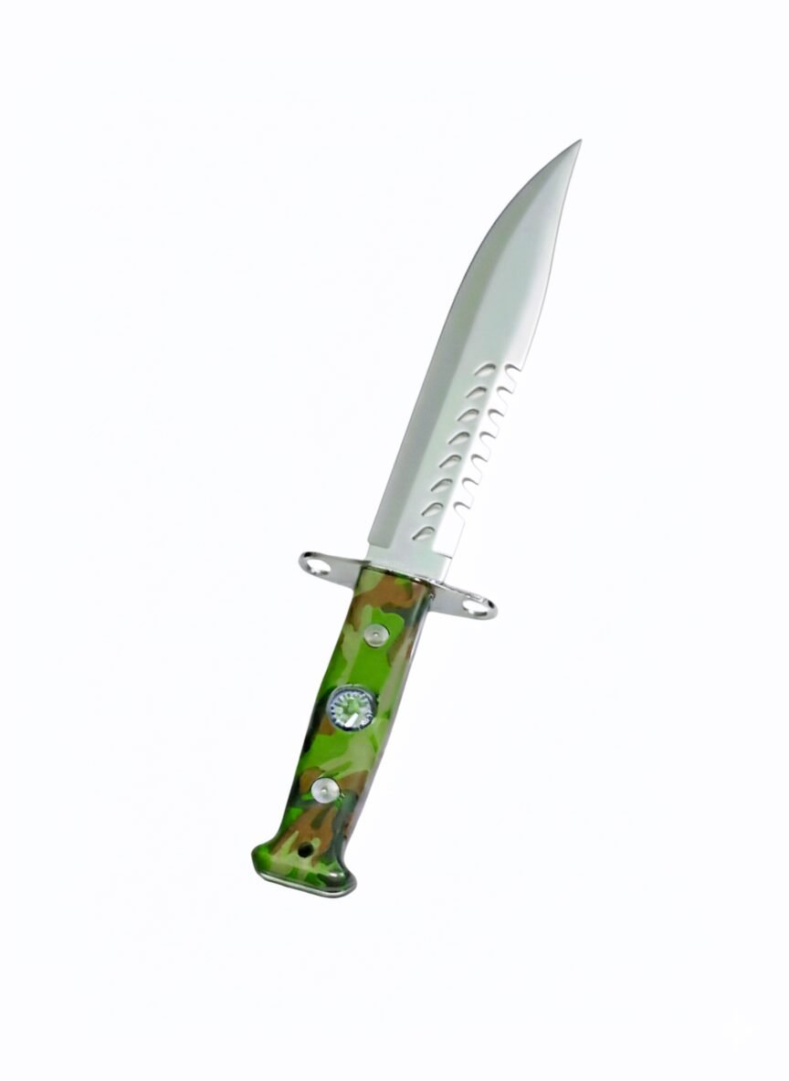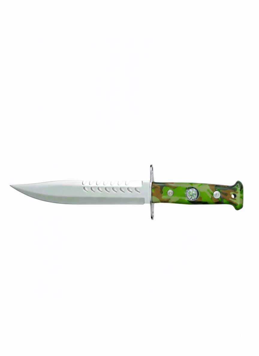 Mango de polímero con brújula con filo de un lado y serrucho del otro ideal para tu salida de camping.