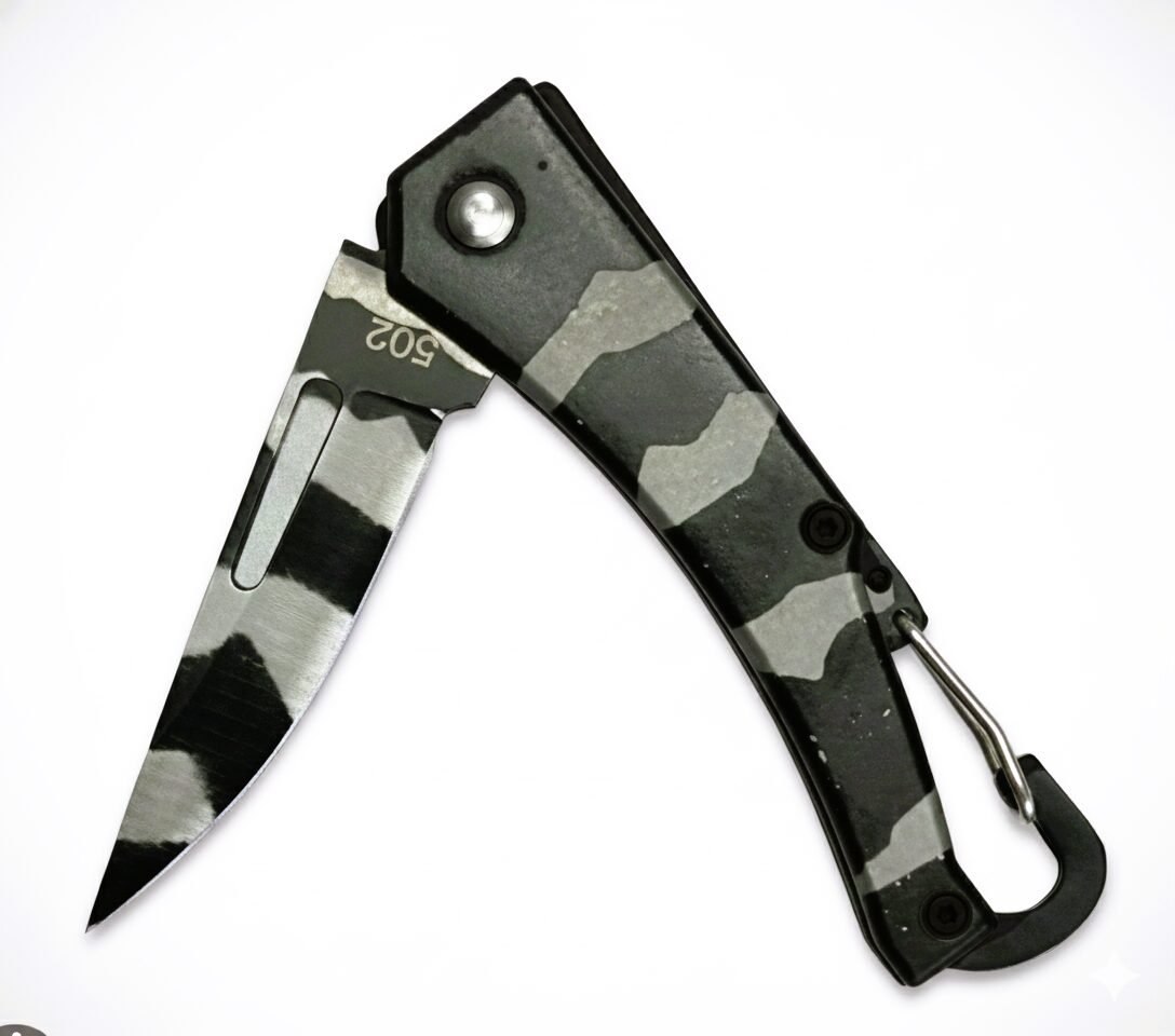 Navaja no automática de acero inoxidable de excelente filo posee clip para llavero. Largo total de 14 cm.