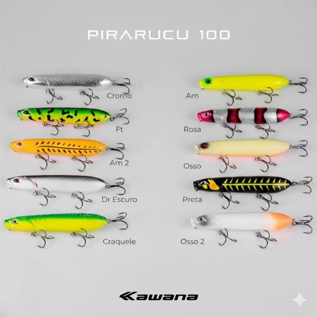 Pirarucu 100 es un señuelo de alto rendimiento diseñado para pescadores que buscan ataques explosivos en la superficie. Su perfil alargado y aerodinámico permite lances precisos, mientras que su acción técnica lo convierte en una tentación irresistible para los grandes depredadores.
